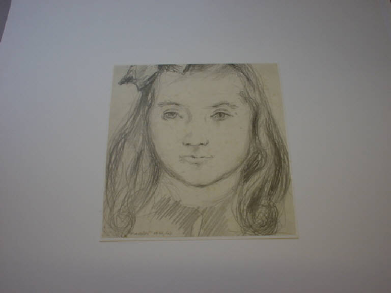 E' raffigurato frontalmente il volto di una bambina dai lunghi capelli acconciati da un fiocco, tagliato dal bordo superiore del foglio. La posizione della piccola modella è frontale. La matita dell'autore ha tratti robusti e poco dettagliati