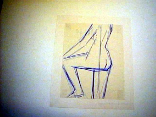Con linee angolate e un tratto ripetuto è rappresentato un nudo femminile di spalle, in piedi. Il ginocchio della gamba destra è rialzato. Il corpo è tagliato all'altezza delle spalle e della parte inferiore delle gambe.