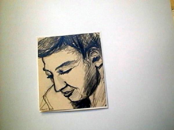 Il soggetto è lo stesso del disegno n° 123. Il volto della modella è posizionato di tre quarti verso sinistra rispetto allo spettatore, e tiene lo sguardo chino verso il basso, in atteggiamento pensieroso. Il segno della grafite è pesante e condotto per tratteggi paralleli e obliqui
