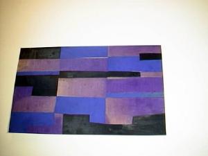 Ritagli rettangolari sono disposti in orizzontale a formare una texture dagli effetti monocromi sui toni del viola e lilla