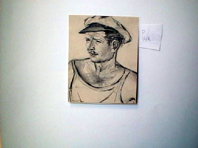 In completa monocromia è raffigurato un busto di marinaio reso di tre quarti, con tratti secchi e decisi anche nella forma e nella connotazione volumetrica. L¿espressione del soggetto è molto intensa.