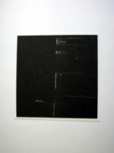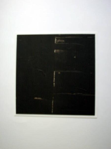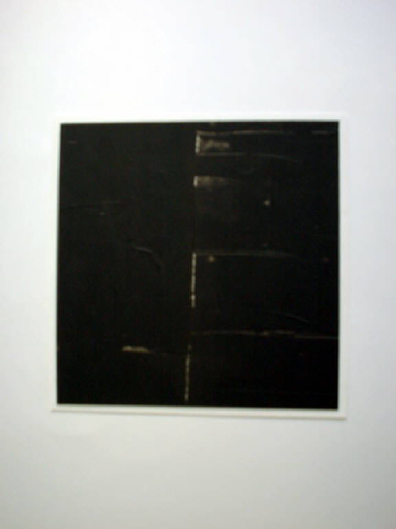 Con l'uso della tempera diversamente diluita, della spatola e di una lamina metallica, il pittore ha steso un'unica campitura di colore trattata con un particolare trattamento "per forza di levare"