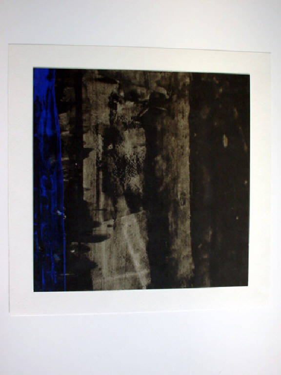 Il piano è trattato a tempera nera variamente diluita; verso il centro è visibile una fascia di colore grigio, e parallela ad essa sulla sinistra fa capolino una campitura sottile verticale in blu Parisi