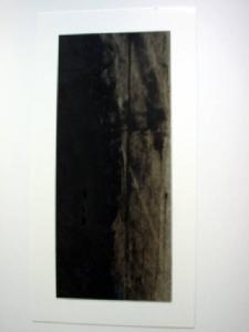 Il colore nero diversamente diluito è steso a pennellate verticali creando una texture di un certo interesse