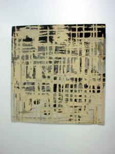 Il pittore, dopo avere steso una campitura uniforme di tempera nera, si è avvalso del pennello a spatola e della lamina per realizzare una griglia di verticali e orizzontali "in negativo"