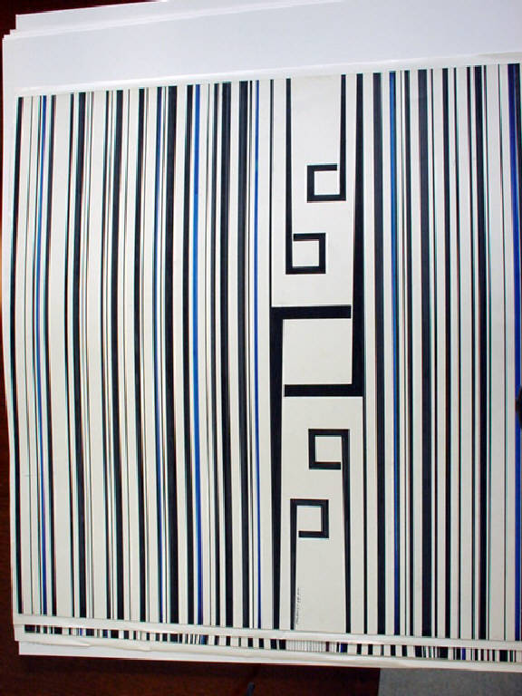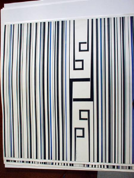- NOTIZIE STORICO CRITICHE In questo disegno la ricerca sulla tecnica serigrafica va di pari passo con la ricerca sulla verticalità.
