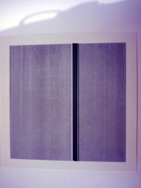 Sul fondo viola spicca in dissimmetria una fascia in verticale di colore viola molto scuro