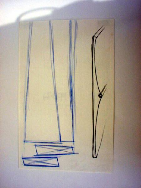 Studio per opere tridimensionali. Il bozzetto visibile sulla destra corrisponde alla tridimensione n° 47; quello sulla sinistra è un doppio modulo in dissimmetria dinamica.