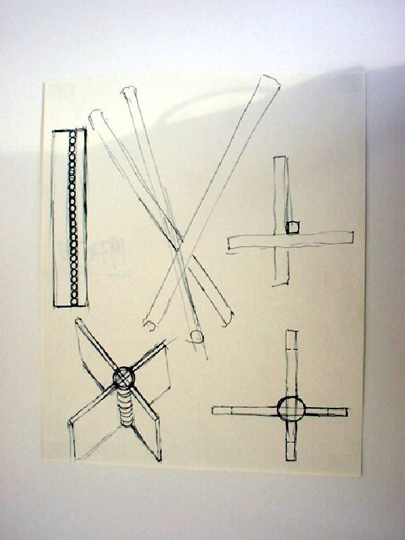 Sono raffigurati studi per opere tridimensionali: in alto a sinistra lo studio per una stele verticale con fori posti in dissimmetria dinamica; al centro in alto per un modulo quadruplo; a destra per un modulo costituito dall 'incrocio di due ortogonali