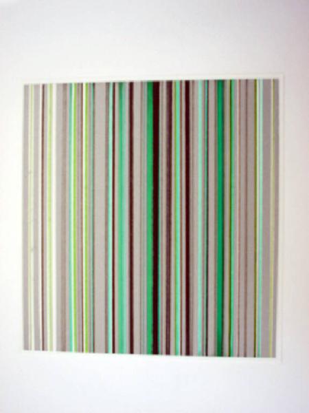 Il piano è occupato da una fitta sequenza di righe verticali parallele nei colori grigio, azzurro, verde, bordò e gialle