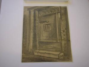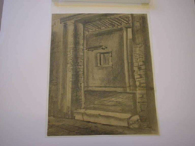 E' raffigurato ingresso di un caseggiato antico, senza alcuna presenza umana. Il disegno sembra avere valore di studio