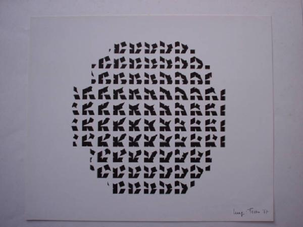 Un'area esagonale è riempita interamente da moduli seriali ottenuti dalla combinazione di altri moduli più piccoli a forma di parallelogramma o di quadrato.