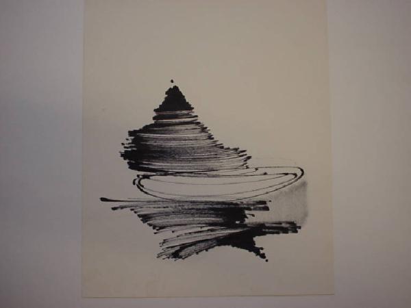 Una sagoma mistilinea è resa attraverso un tratteggio a volte fitto e a volte rado di linee orizzontali o ellittiche parallele
