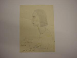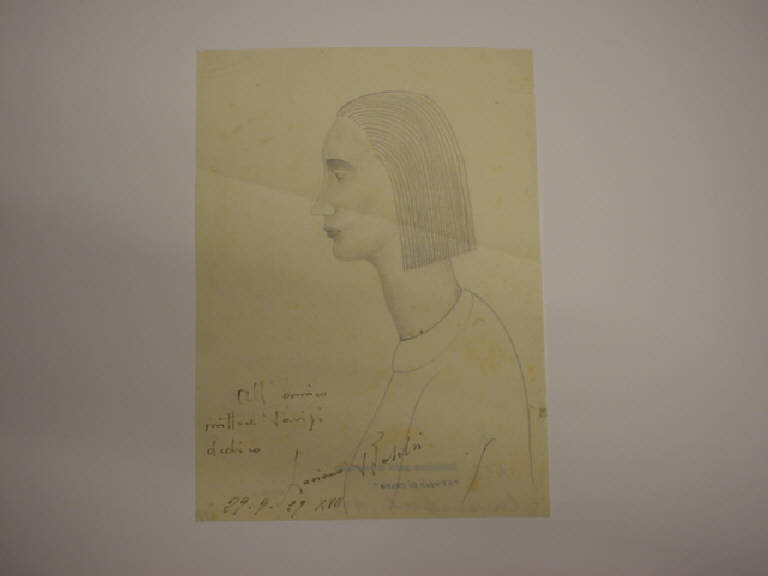 Ricorda certi personaggi di Casorati per la linearità ferma nei contorni e la volumetria ben tornita questo profilo femminile.