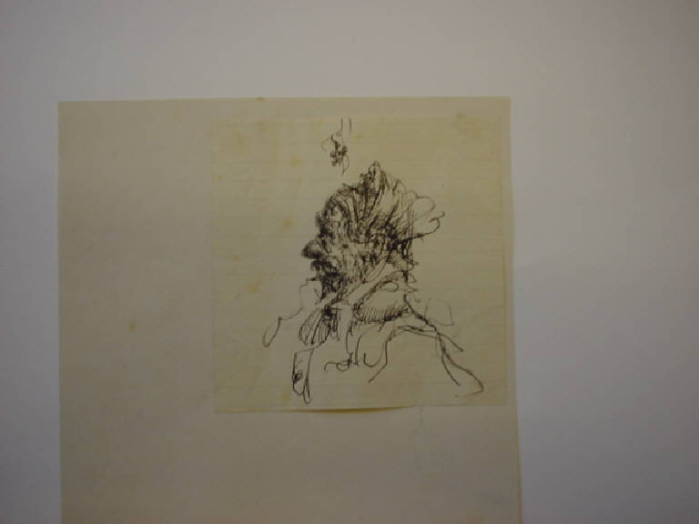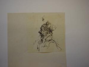 Con segno calligrafico e ricco di volute spiraliformi è definito il profilo di una figura femminile, di cui resta imprecisata la fisionomia