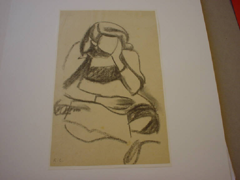 Senza che il volto sia definito è una donna seduta, in atteggiamenteo pensieroso, ripresa dall'alto