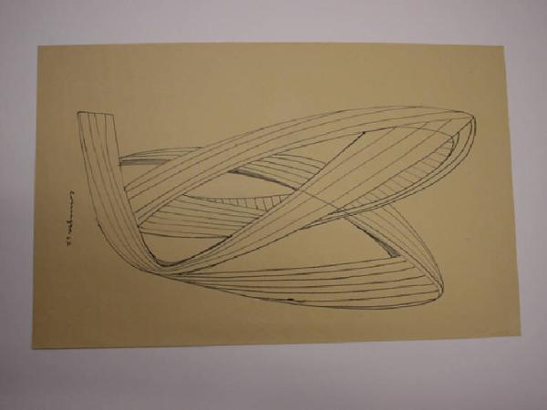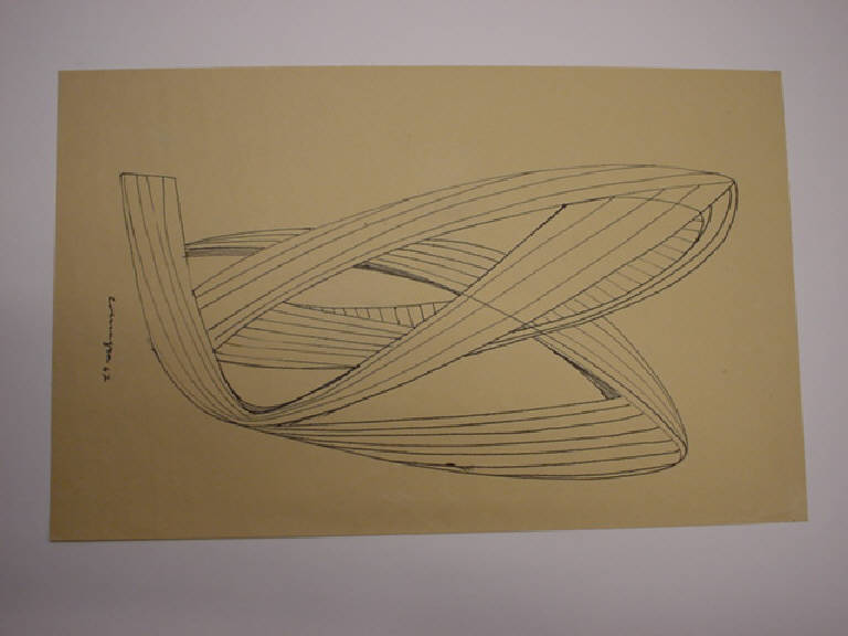 Ipotesi di scultura astratta, costituita da una fascia curvata su se stessa più volte, la cui superficie è evidenziata con un tratteggio condotto per linee oblique parallele