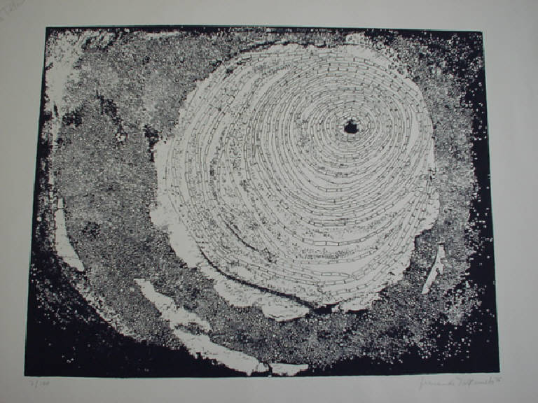 Attraverso una dettagliatissima definizione dei contorni e delle tessiture, è riprodotta una galassia.