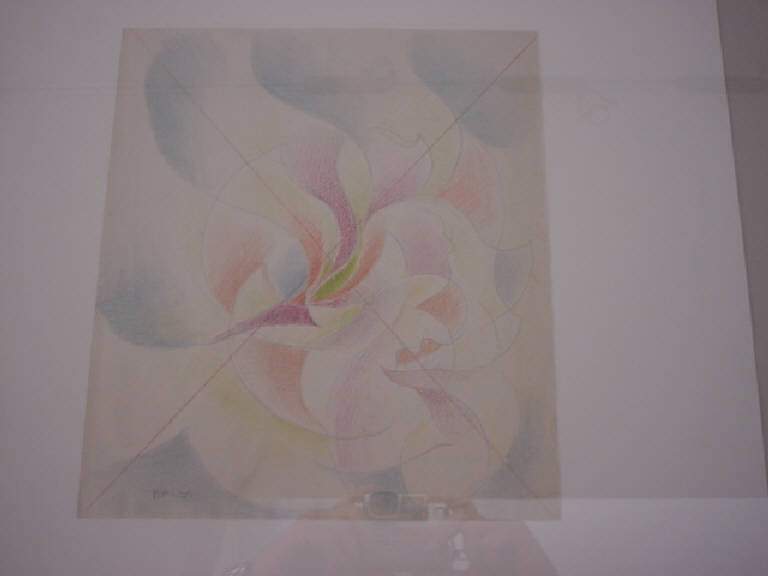 Forma stilizzata di un fiore che si sviluppa a partire da un vertice centrale, per allargarsi ed espandersi entro l'intera superficie del foglio.