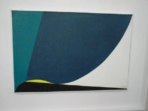 Composizione astratta risultante dalla combinazione di diverse forme mistilinee in diversi colori.