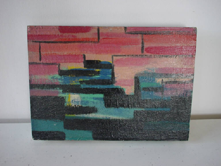 L'opera rappresenta forme geometriche con andamento verticale, connotate da un policromatismo quasi romantico. La struttura cromatica lo divide in due zone nel senso della verticalità: in quella di destra prevale l'elemento cromatico rosa, in quella di sinistra l'elemento cromatico verde-azzurro.