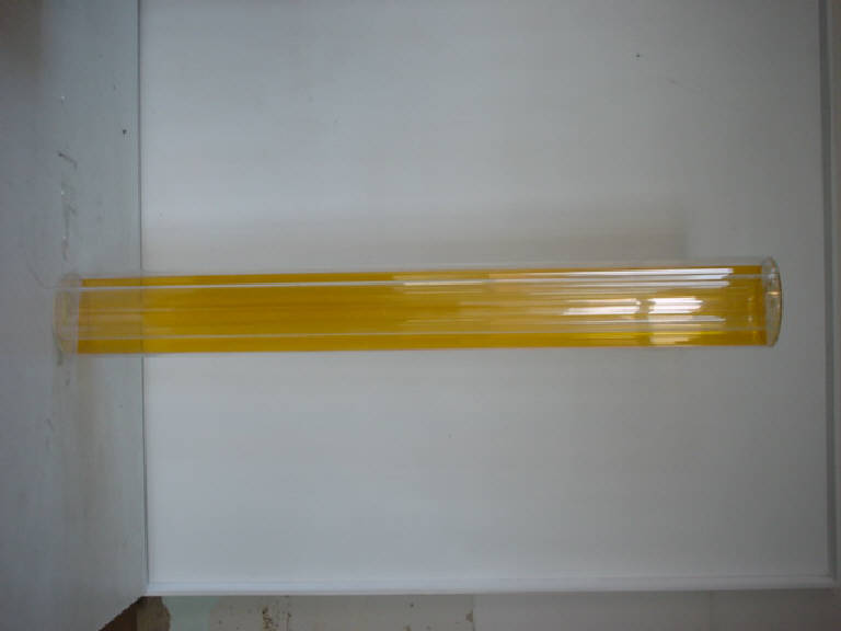 Assemblaggio costituito da due cilindri cavi trasparenti e una lamina gialla