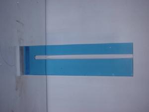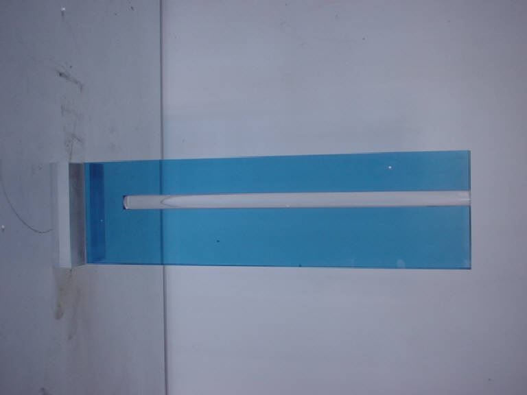 Su una base quadrangolare trasparente è inserito un modulo rettangolare ad andamento verticale (di due cm di spessore) in colore blu trasparente, mel quale si inscrive in dissimmetria dinamica un sottile elemento tubolare trasparente. L'opera è stata esposta nel 1975 all'Interior design di via Veneto a Roma