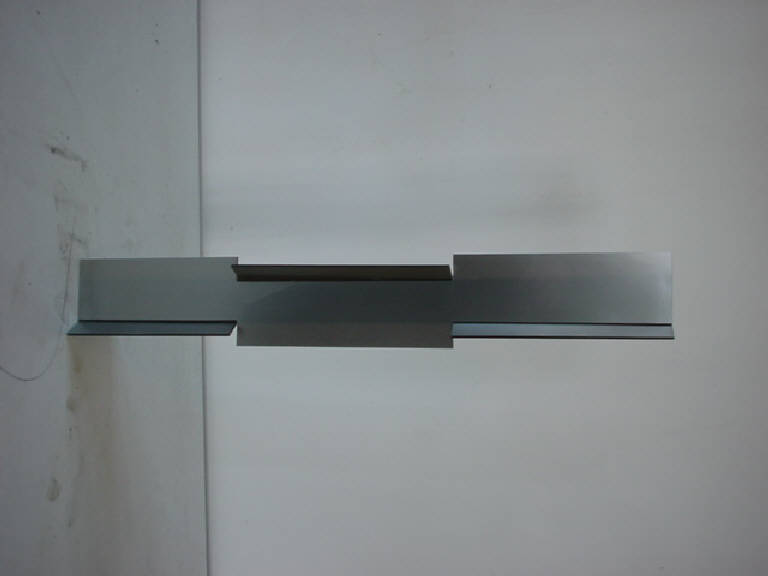 Tre elementi a forte sviluppo verticale ed a sagoma rettangolare sono tagliati ai lati in modo da permetterne l'incastro. Tale incastro è realizzato in modo che i tre elementi risultino in dissimmetria dinamica l'uno rispetto all'altro, lasciando al centro un vuoto triangolare