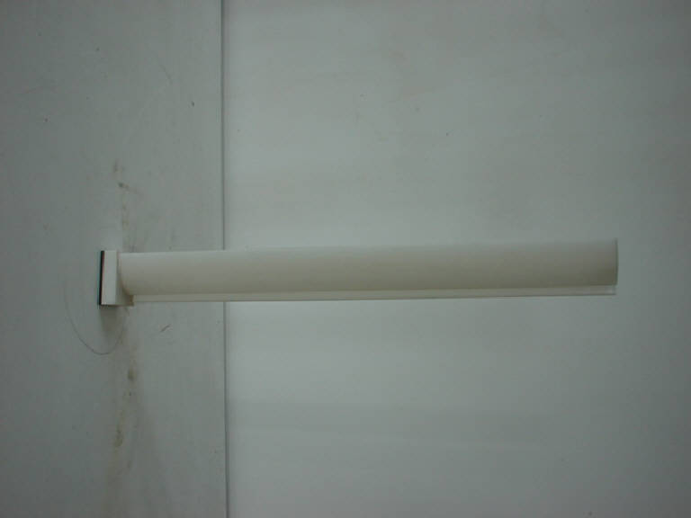 Elegante scultura di segno astratto, composta da due lastre concave bianche poste in dissimmetria dinamica, ovvero specularmente ma senza un perfetto allineamento.