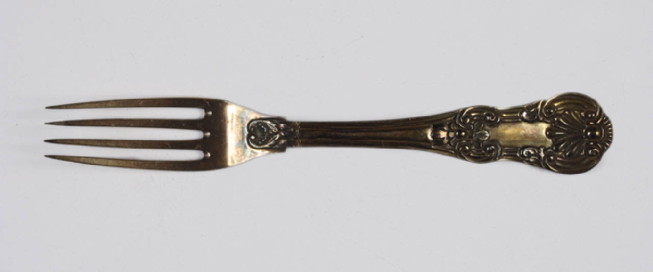 - NOTIZIE STORICO CRITICHE Come attestano i punzoni, le forchette vennero realizzate a Napoli da due diversi argentieri: sei da Domenico Capozzi tra il 1832 e il 1850, e sei da Simone Ruggiero, tra il 1832 e il 1872. E' evidente l'emulazione della posateria inglese nella foggia del manico che segue il cosiddetto "King's pattern", una variante riccamente decorata del "Fiddle pattern". Le posate sono state per questo ascritte, eroneamente, da G. Malafarina (1972) ad ambito inglese