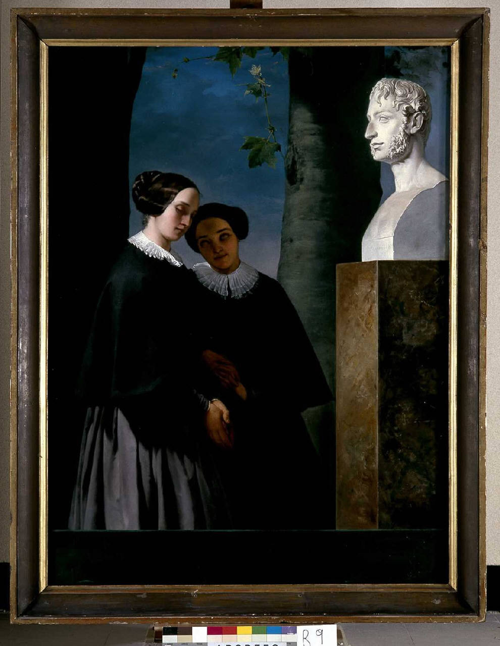 Allegoria in memoria di Alberto De Felber. Due cieche in preghiera davanti ad un'erma