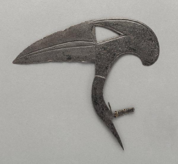 Musele, ovvero lama di coltello dalla forma a becco d'uccello, dalla sagoma fondamentalmente triangolare con il lato posteriore arrotondato che si protende verso il basso. Al centro un foro triangolare. Impugnatura ricurva terminante con un breve codolo appuntito e vicino ad essa uno spuntone avvolto da una piattina di rame a spirale.