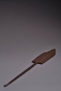 Lama sottile, crestata, dal profilo romboidale asimmetrico, molto appuntita. Lungo e fine codolo quadrangolare centrale.