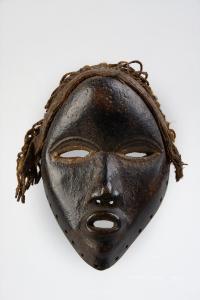 - NOTIZIE STORICO CRITICHE Fra i dan della Liberia e della Costa d'Avorio le maschere sono incarnazioni degli spiriti della foresta. Essi contrappongono maschere "belle" (le maschere di tipo femminile, gle mu) e maschere "brutte" (le maschere di tipo maschile, gle glon).\nLe maschere femminili riprendono il volto ideale delle donne dan: la forma ovale con il mento a punta, la simmetria dei tratti del volto, gli occhi stretti e allungati. Il comportamento che la maschera assume è consonante alle sue forme: i suoi modi sono affabili e scherzosi e uno dei suoi compiti è quello di portare il cibo ai ragazzi chiusi nel campo d'iniziazione.