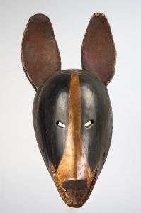 - NOTIZIE STORICO CRITICHE La maschera rappresenta una iena ed è utlizzata nel culto Dye, nelle cui danze si esibiscono maschere di animali temibili e potenti come appunto la iena, l'ippopotamo, l'elefante, il bufalo. Sono segno del potere degli uomini adulti, strumenti del controllo sociale e non possono essere viste da donne e bambini.