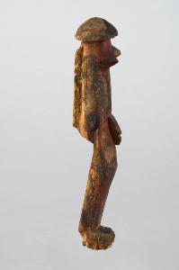 - NOTIZIE STORICO CRITICHE Le statue dogon sono utlizzate in contesti sacrificali e costituiscono di fatto degli altari. La loro funzione (W. E. A. Van Beek, Functions of sculpture in Dogon religion, in African Arts, Los Angeles, vol. 21, no. 4,1988) sarebbe quella di identificare colui che effettua il sacrificio e il problema che vuol risolvere, attraendo l'attenzione degli esseri soprannaturali e rafforzando il contatto con essi. Le statue vengono scolpite dai fabbri (alcuni dei quali sanno anche scolpire il legno) sulla base delle indicazioni tratte da un rito di divinazione che fa uso di conchiglie (cauri) o che interpreta le tracce lasciate dalla volpe sul terreno. Idealmente le sembianze della figura dovrebbero legarsi alla persona che ne farà uso anche se poi in realtà stile e iconografia sono convenzionali e una stessa statua può poi essere usata da più persone. Solo occasionalmente, quando il proprietario originario è deceduto e passa a un figlio, la statua può essere vista come una figura di "antenato". \nQueste statue hanno la funzione di veicolare la preghiera della persona che le possiede. La loro postura può indicare la posizione di preghiera (in ginocchio o con le braccia levate al cielo) oppure lo staus sociale che si vuole raggiungere o ancora una qualche rivelazione avuta in sogno.