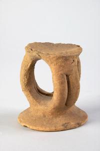- NOTIZIE STORICO CRITICHE Terrecotte di questo tipo erano utilizzate dai Tellem nei riti funerari che avevano luogo nelle grotte che si aprono nella falesia di Bandiagara (Mali) al di sopra delle grotte della necropoli (R.M.A. Bedaux, M. Raimbault, Les grandes provinces de la céramique au Mali, in J. Devisse, Vallées du Niger, Editions de la Réunion des Musées Nationaux, 1993). La base era ottenuta attraverso il calco di un vaso preesistente mentre la parte superiore veniva modellata a colombino.