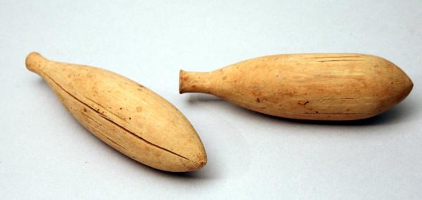 Dilatatori in legno con forma a goccia.
