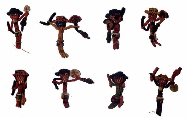 Bordura di manto con figurina di personaggio in posizione di danza, porta in mano un ventaglio ed un oggetto di forma allungata (Bastone? Strumento musicale?)