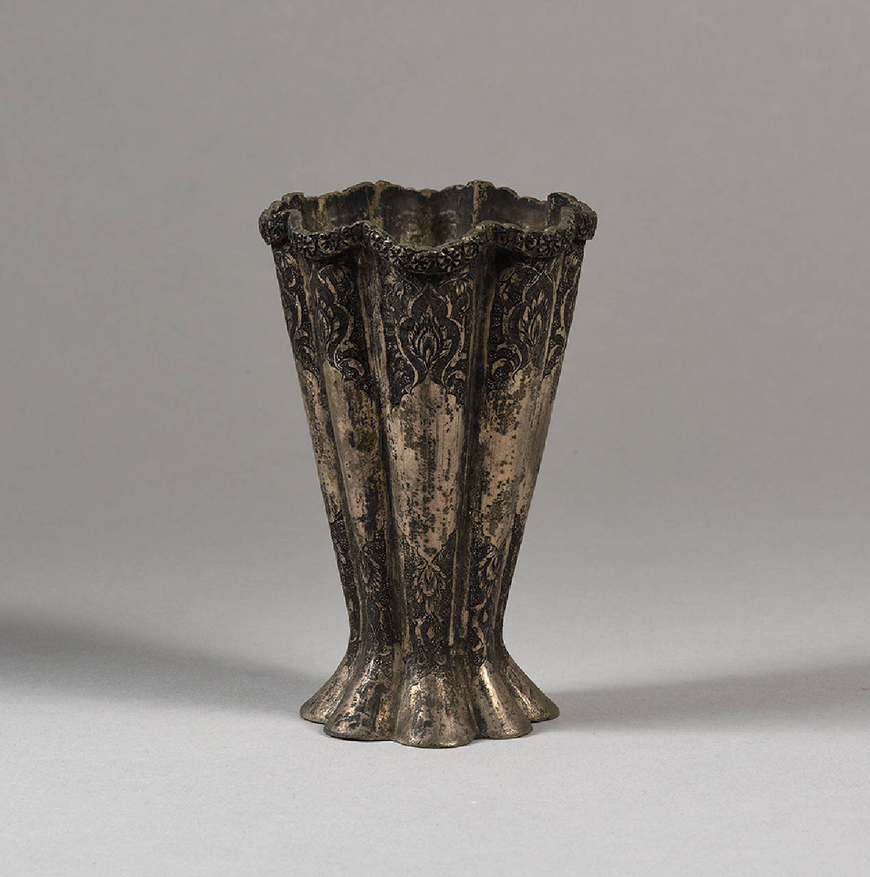 Vaso a cono polilobato in metallo argentato = ISL 416
