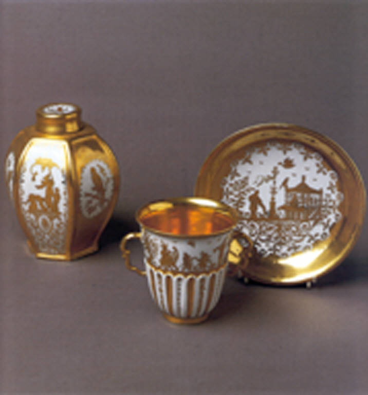 Porcellana dura invetriata e dorata