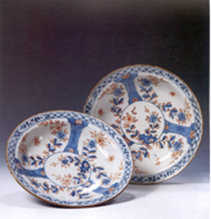 - NOTIZIE STORICO CRITICHE Questo decoro trova ispirazione in un motivo Imari cinese, di produzione contemporanea, dipinto nella consueta tricromia Imari. \nL'ornato del bordo "alla Chinese" è una bordura già molto usata da Antonio Maria Coppellotti a Lodi.