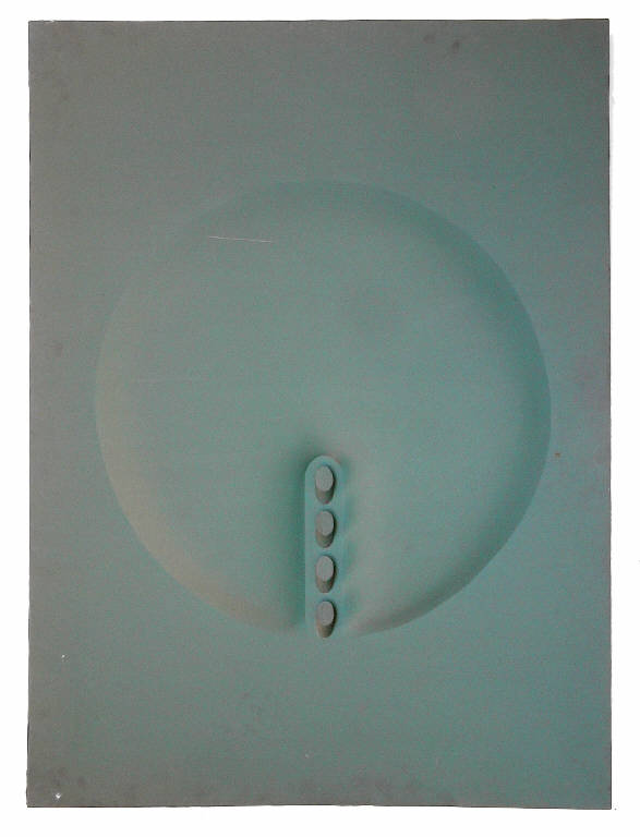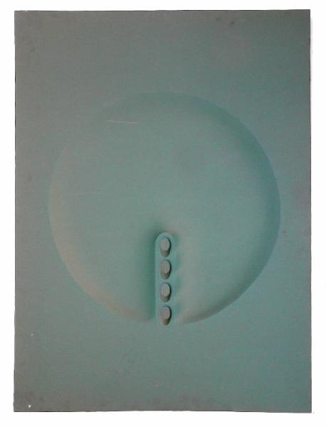 - NOTIZIE STORICO CRITICHE Il quadro si pone definitivamente come oggetto autonomo, spoglio di ogni componente illusionistica o metaforica, presentando, nella concreta materialità della sua fattura, i segni dell'intenzionalità dell'artista; la rigorosa monocromia della tela, la greve, fisica e "rozza" consistenza delle estroflessioni (in tempi in cui la diffusione dello shaped canvas era di là da venire), il riferimento a una geometria "imperfetta" ed elementare sottolineano il carattere oggettuale dei quadri, la loro corporea e tangibile presenza nello spazio; le forme approssimativamente ellittiche che gonfiano la tela non risultano così un semplice "arricchimento" della superficie pittorica, ma tendono a dilatarla prepotentemente nella terza dimensione, evidenziandone la struttura plastica e ponendola in un nuovo rapporto con lo spettatore e con l'ambiente. (Guido Armellini)