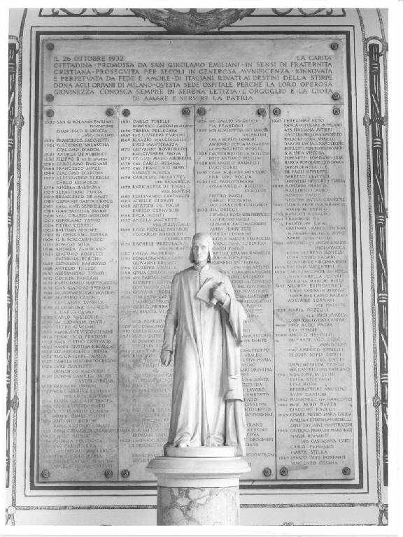 - NOTIZIE STORICO CRITICHE La lapide ricorda la costruzione della nuova sede dell'orfanotrofio maschile e venne costruita dopo la soppressione dell'ordine conventuale in San Pietro in Gessate.