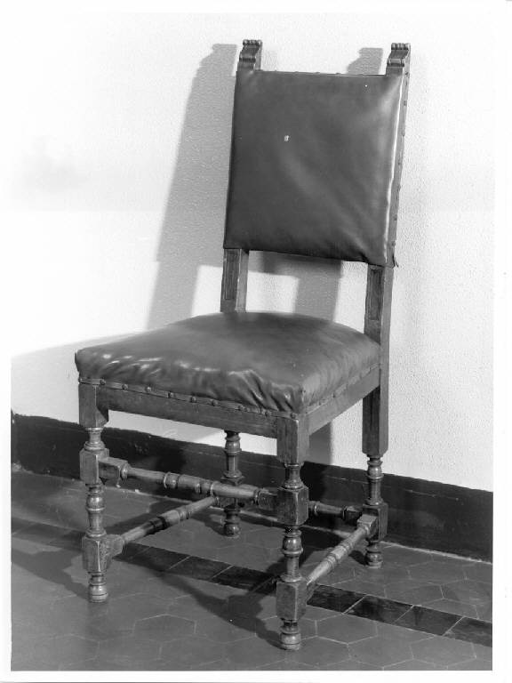 gambe tornite raccordate da traverse, sedile e schienale imbottiti