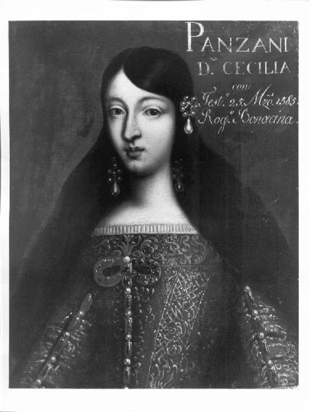 - NOTIZIE STORICO CRITICHE Cecilia Panzani risulta aver fatto testamento nel 1632 lasciando i suoi beni, nel caso fosse morta senza figli maschi, al Luogo Pio degli Orfani di San Martino a Milano. Così avvenne e la sua eredità passò all'orfanotrofio nel 1646. La data riportata nell'iscrizione in alto a destra è dunque errata. La donna è stata raffigurata ancora giovane e vestita in maniera sfarzosa, secondo il gusto della moda spagnola. Non si conosce l'attribuzione esatta del dipinto; si potrebbe trattare dell'opera di una bottega milanese dei primi decenni del XVII secolo che non esprime qualità artistiche particolarmente rilevanti. La secchezza dei tratti, definiti da marcate linee chiaroscurali, sembra avvicinare il dipinto al ritratto di Agostino Cusani, di Giuliano Pozzobonelli.