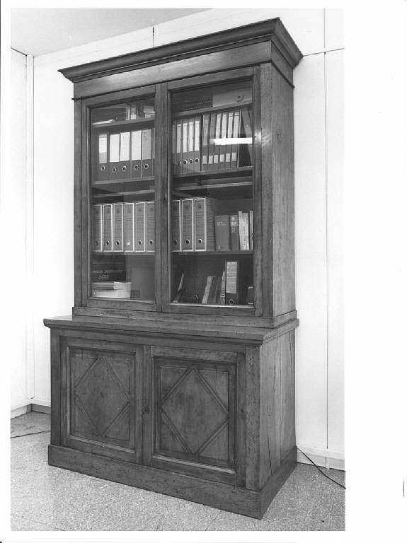 parte inferiore con doppio sportello, alzata a due ante a vetri con cornicione leggermente aggettante