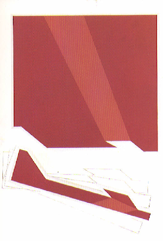 Opera costituita da due pezzi di dimensioni diverse, staccati e apparentemente compatibili. La parte di dimensioni maggiori è un quadrato a cui è stato tagliato in modo irregolare un lato; la seconda parte è la parte che dovrebbe completare la figura. L'opera è dipinta di rosso con una bordura bianca in legno.