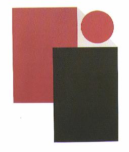 Opera sagomata costituita da due rettangoli ross e nero un triangolo e cerchio.