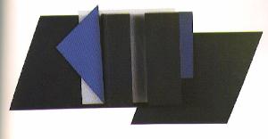 Opera polimaterica sagomata formata dall'insieme di forme geometriche diverse.